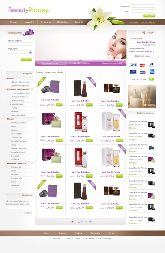 Wykonanie sklepu internetowego dla perfumerii, która zajmuje się sprzedażą szerokiej gamy kosmetyków pielęgnacyjnych, perfum oraz kosmetyków i akcesoriów do maniucure i pedicure.
